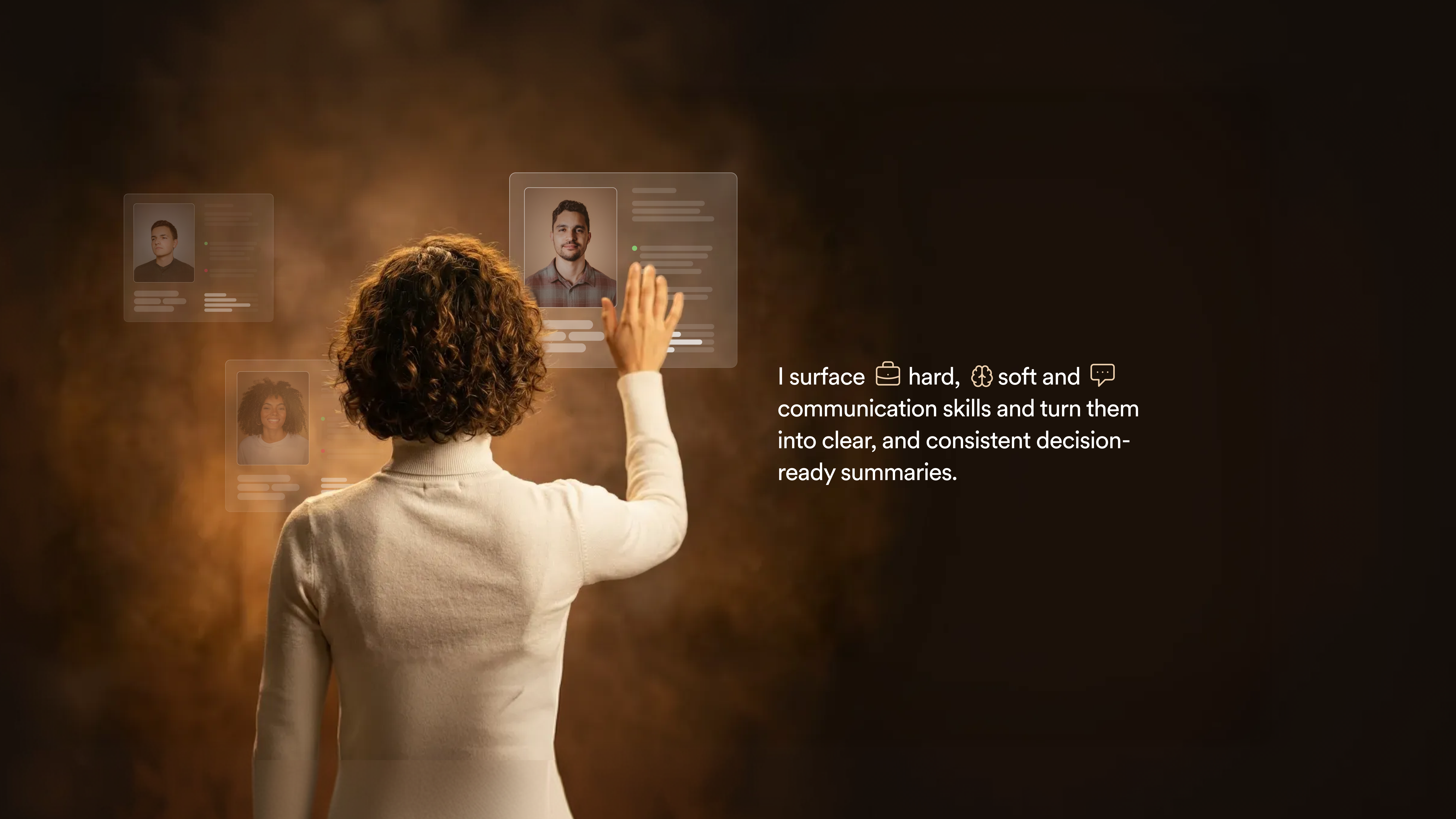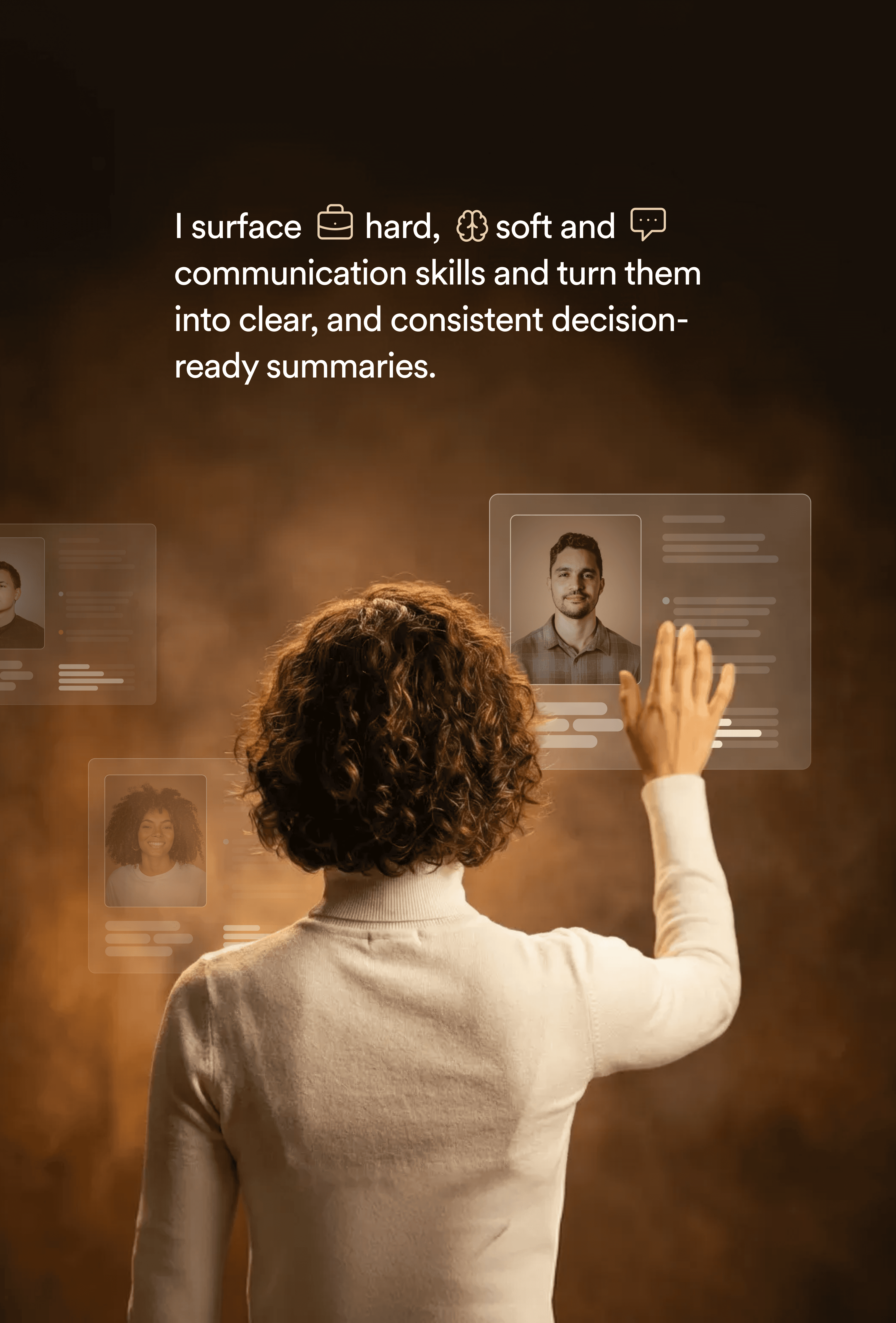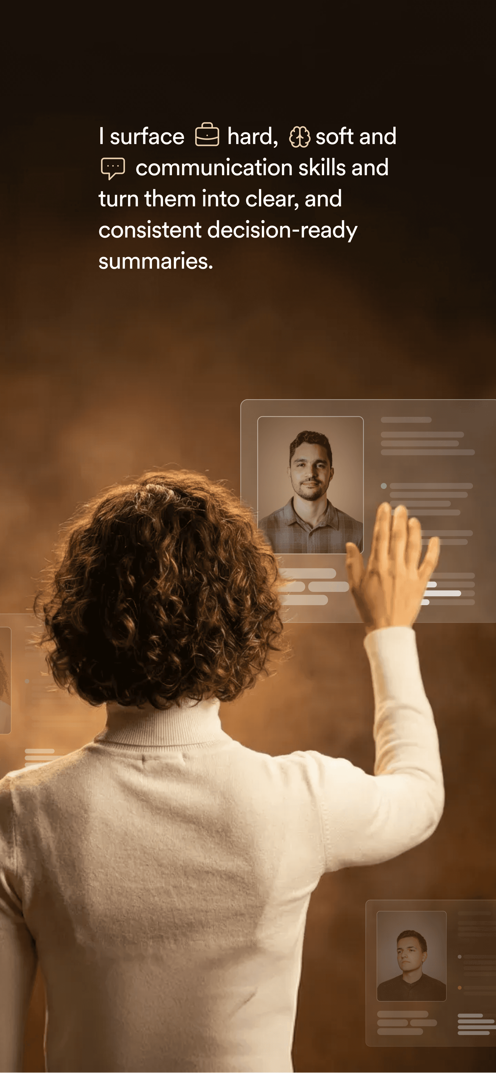 I take care of your prescreening interviews, and turn conversations into clear, decision-ready insight.